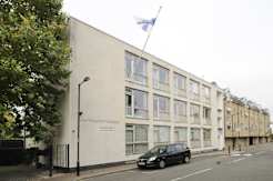 The Finnish Church in London is located in Rotherhithe, Southeast London. Church lies next to St. Olav's Square roundabout. The exact address is 33 Albion St, London SE16 7HZ.